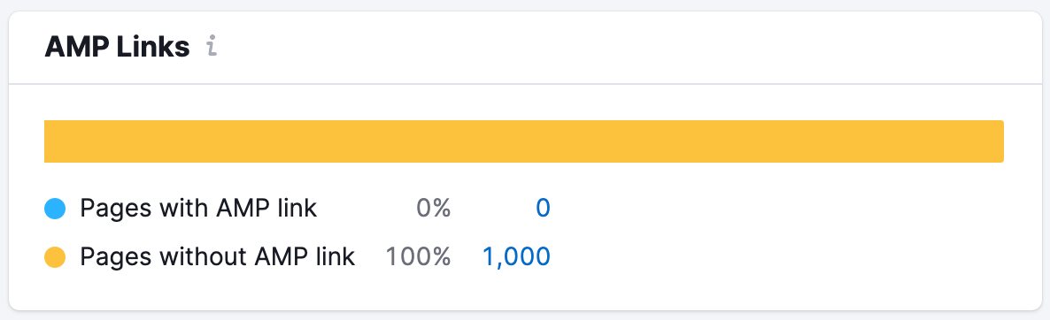 If you have only AMP pages without an equivalent desktop page, the widget would show 100% of pages without AMP link. In this case, for your actual amp mistakes, you’ll have to use the issues tab.