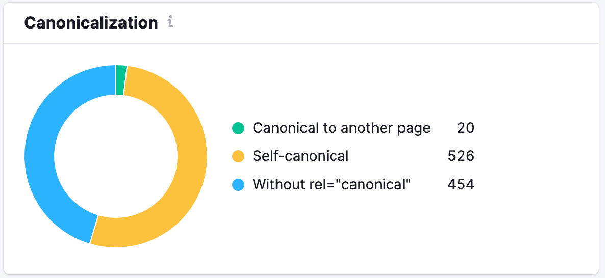 Next is the Canonicalization chart. This chart will tell you how many pages crawled were found having the rel=”Canonical” tag in their HTML.