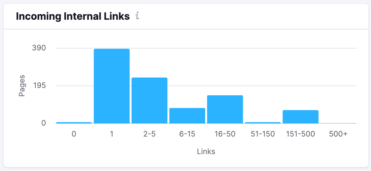 Internal links are important for SEO because they can help structure the flow of your website and allow crawlers to easily navigate through your site’s content. Hover over each bar and you’ll see how many of your pages have each number of internal links pointing to them.